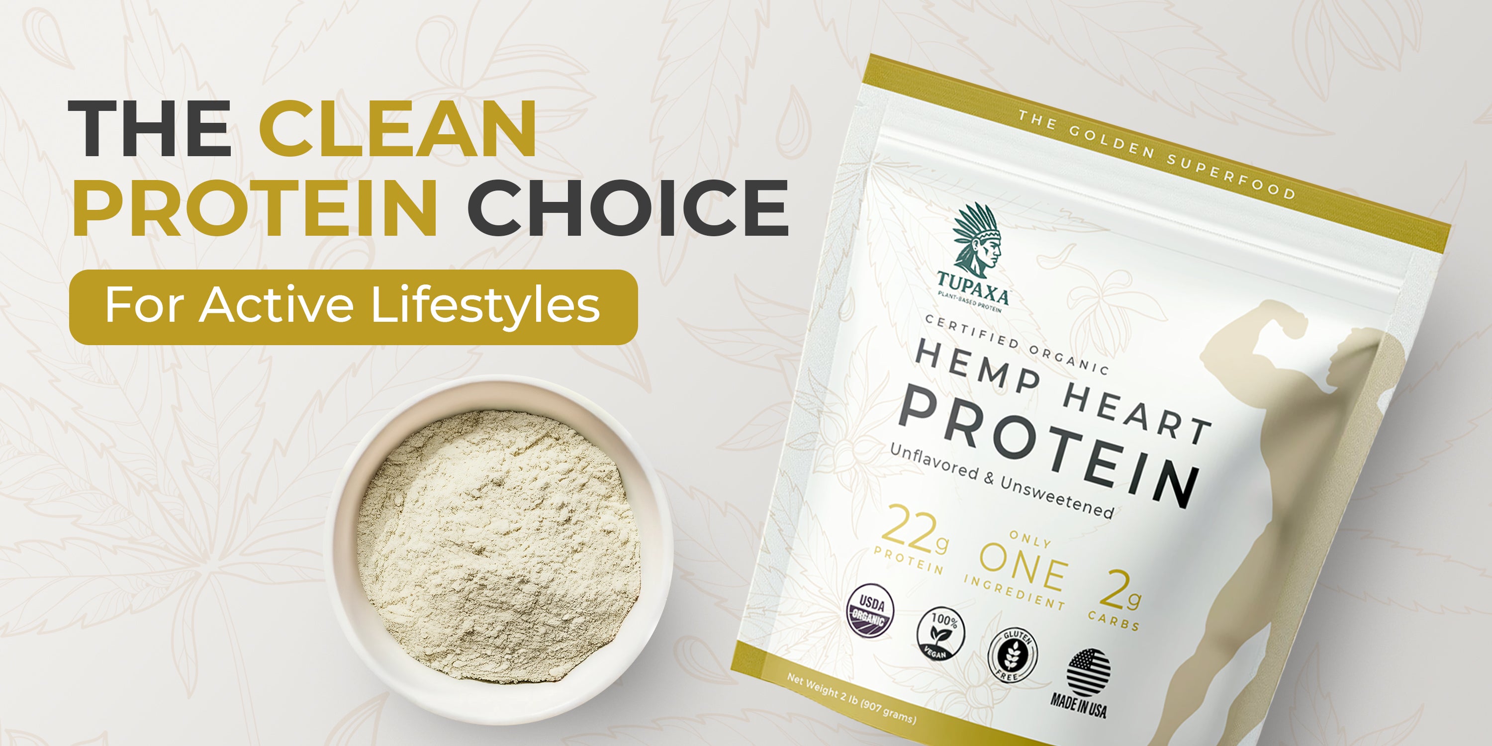 TUPAXA Organic Hemp Protein Powder – Unflavored – 20 Servings